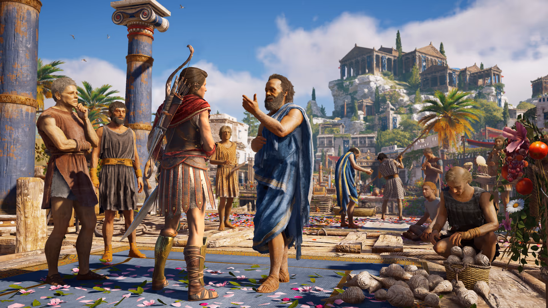 Assassin’s Creed Odyssey is a large-scale open-world action rpg set during the Peloponnesian War in ancient Greece. Players choose between two protagonists and explore a vast map filled with islands, naval combat, branching quests, and faction conflicts. The design leans heavily into loot tiers, dialogue choices, mercenary systems, and level-gated regions. Its tone combines mythological spectacle with political drama, prioritizing player choice and scale over the tighter stealth focus of earlier entries.