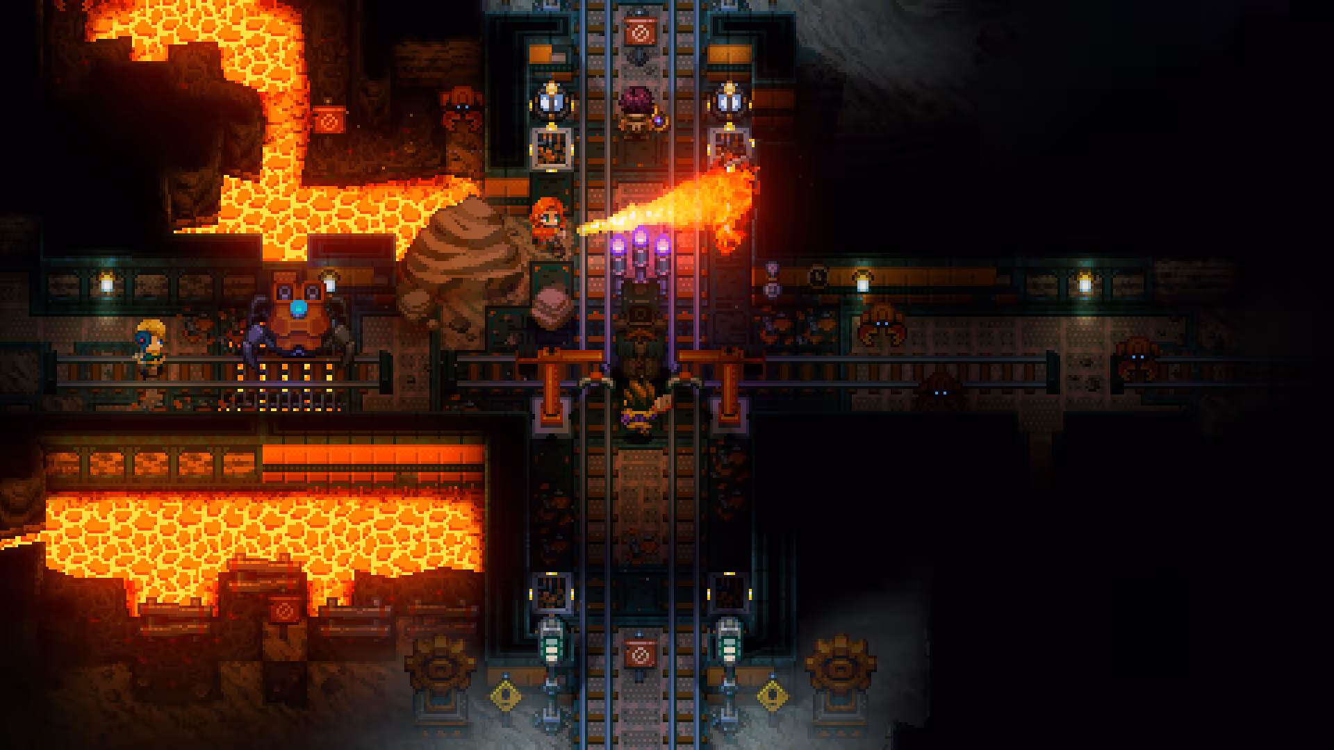 Core Keeper is a sandbox survival RPG where players explore a vast underground world, gather resources, build bases, and fight bosses while uncovering the secrets of a mysterious ancient Core. The core gameplay loop revolves around mining, crafting gear, farming, and expanding automated resource production while pushing deeper into procedurally generated biomes. It blends elements of survival crafting games with light ARPG combat and exploration-driven progression. The overall structure emphasizes open-ended play, base building, and cooperative exploration.