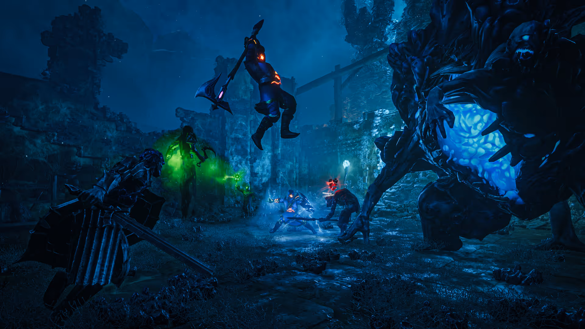 • Skill trees and equipment systems provide layered combat roles.