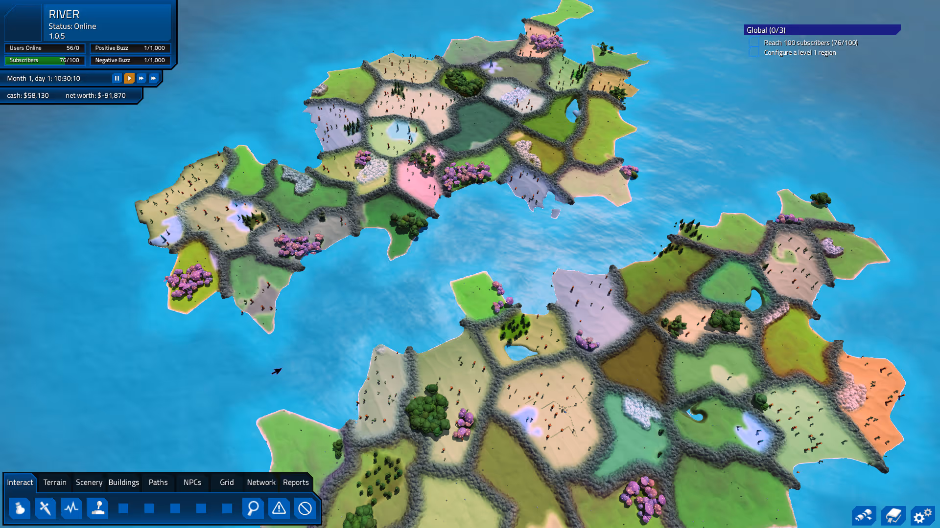 MMORPG Tycoon 2 is a simulation game where players design, build, and manage their own MMORPG world from the ground up. The gameplay loop revolves around creating zones, quests, enemies, and progression systems while balancing player satisfaction and economy. Players act as both developer and administrator, shaping the experience for AI-controlled players in the world. The experience blends city-building style management with game design systems and sandbox creativity.