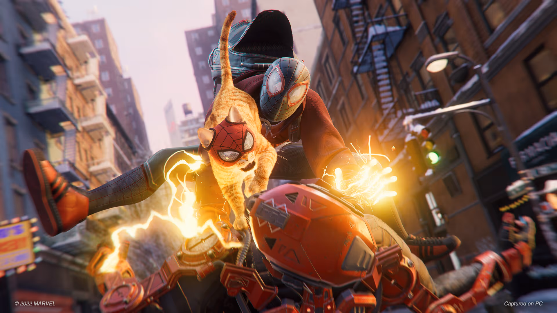Marvel's Spider-Man: Miles Morales is an open-world action RPG where players control Miles Morales protecting New York City during the winter holidays. The gameplay loop revolves around web-swinging traversal, combat encounters, story missions, and open-world activities across Manhattan and Harlem. Miles introduces unique bio-electric venom powers and camouflage abilities that change combat and stealth options. The experience focuses on a shorter but tightly paced superhero story with fluid traversal and cinematic action.