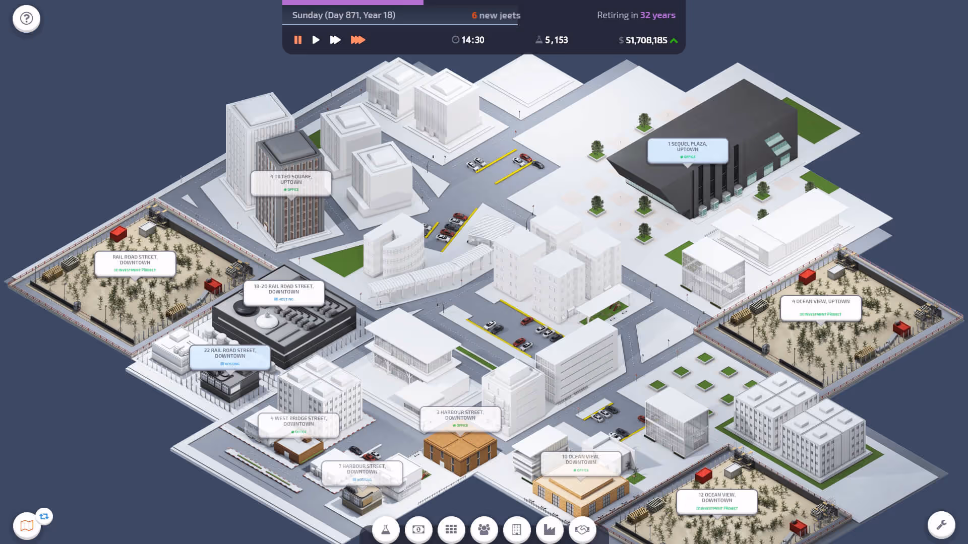 • Players independently manage hiring, development, and company expansion.