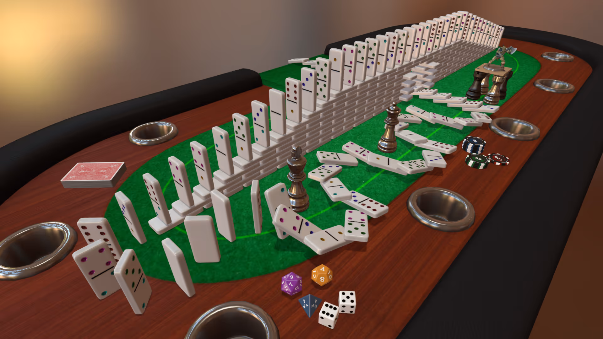 Tabletop Simulator is a physics-based sandbox that recreates tabletop gaming in a virtual environment. The gameplay loop revolves around loading board games, card games, and custom creations onto a virtual table where players interact with pieces using realistic physics. The platform supports a wide range of classic tabletop games while also allowing users to import and create their own content. Its structure focuses on multiplayer tabletop experiences and mod-driven community content.