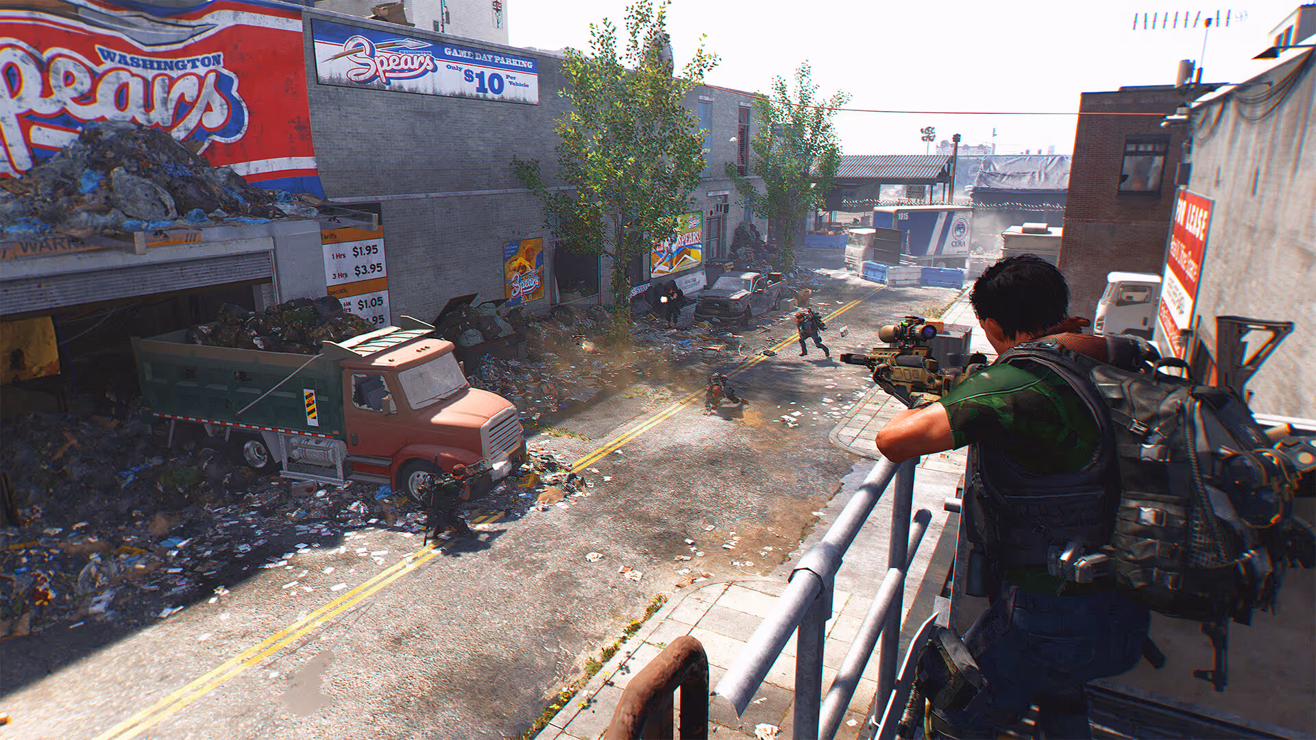 Tom Clancy's The Division 2 is an open-world looter shooter set in a devastated Washington D.C. where players operate as agents restoring stability after societal collapse. The gameplay loop revolves around completing missions, clearing control points, collecting gear, and optimizing character builds through weapons and armor sets. Players fight hostile factions across a large urban environment while improving their equipment and abilities. The experience emphasizes cooperative gameplay, tactical cover-based combat, and long-term endgame progression.